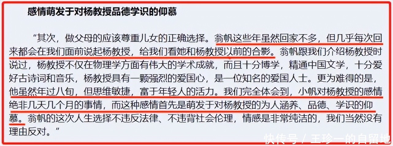 她写下这些文字,证明了自己和杨振宁之间的感情。