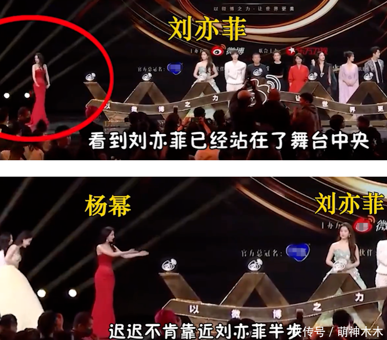 2022年微博之夜,杨幂压轴官宣,身边有好友baby和刘诗诗,刘亦菲也在,当晚出现了两大名场面,一是仙剑系列同框,二是刘亦菲被孤立。